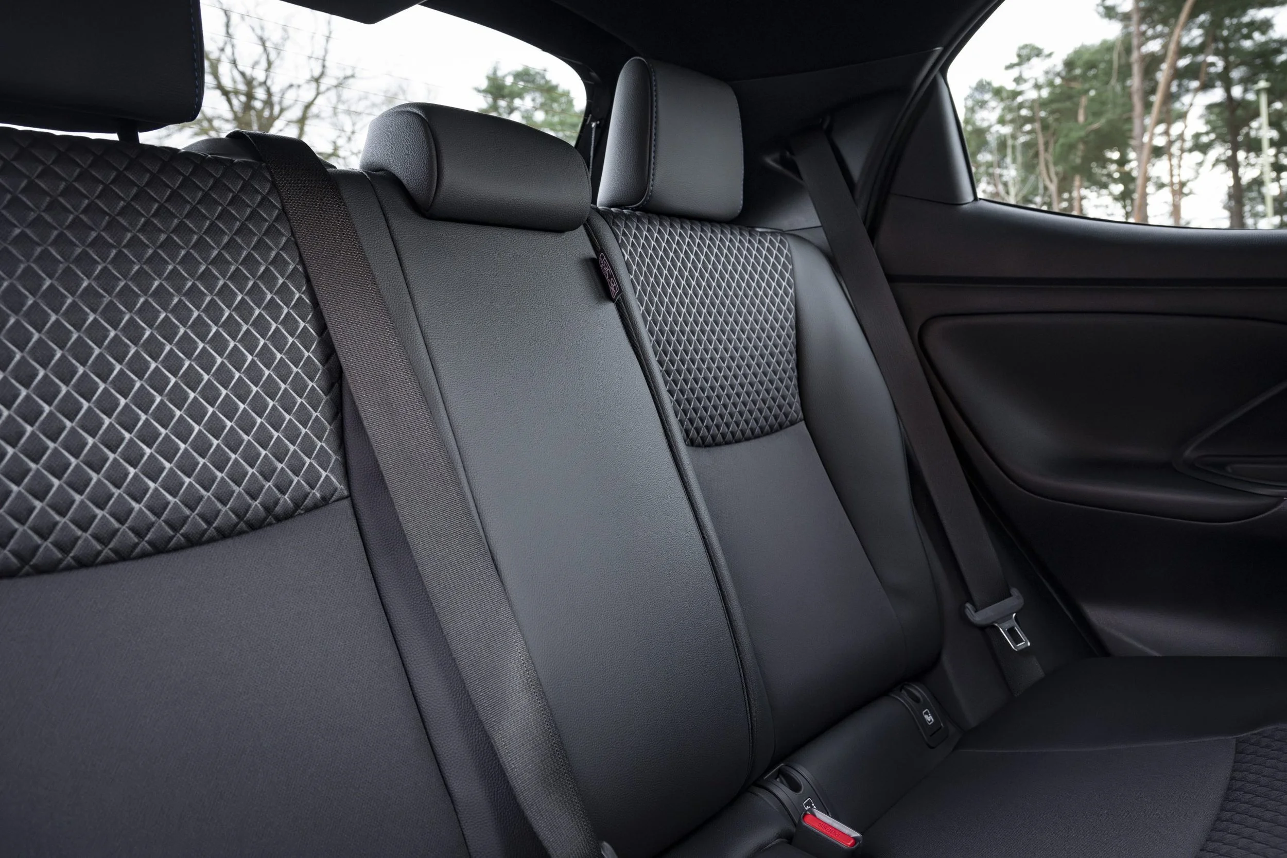 Toyota has included several useful features as standard across all Yaris versions, such as a central armrest, automatic headlights, automatic wipers, and power-adjustable heated door mirrors. Additionally, the rear seats can be split-folded in a 60:40 configuration, allowing for increased storage space.