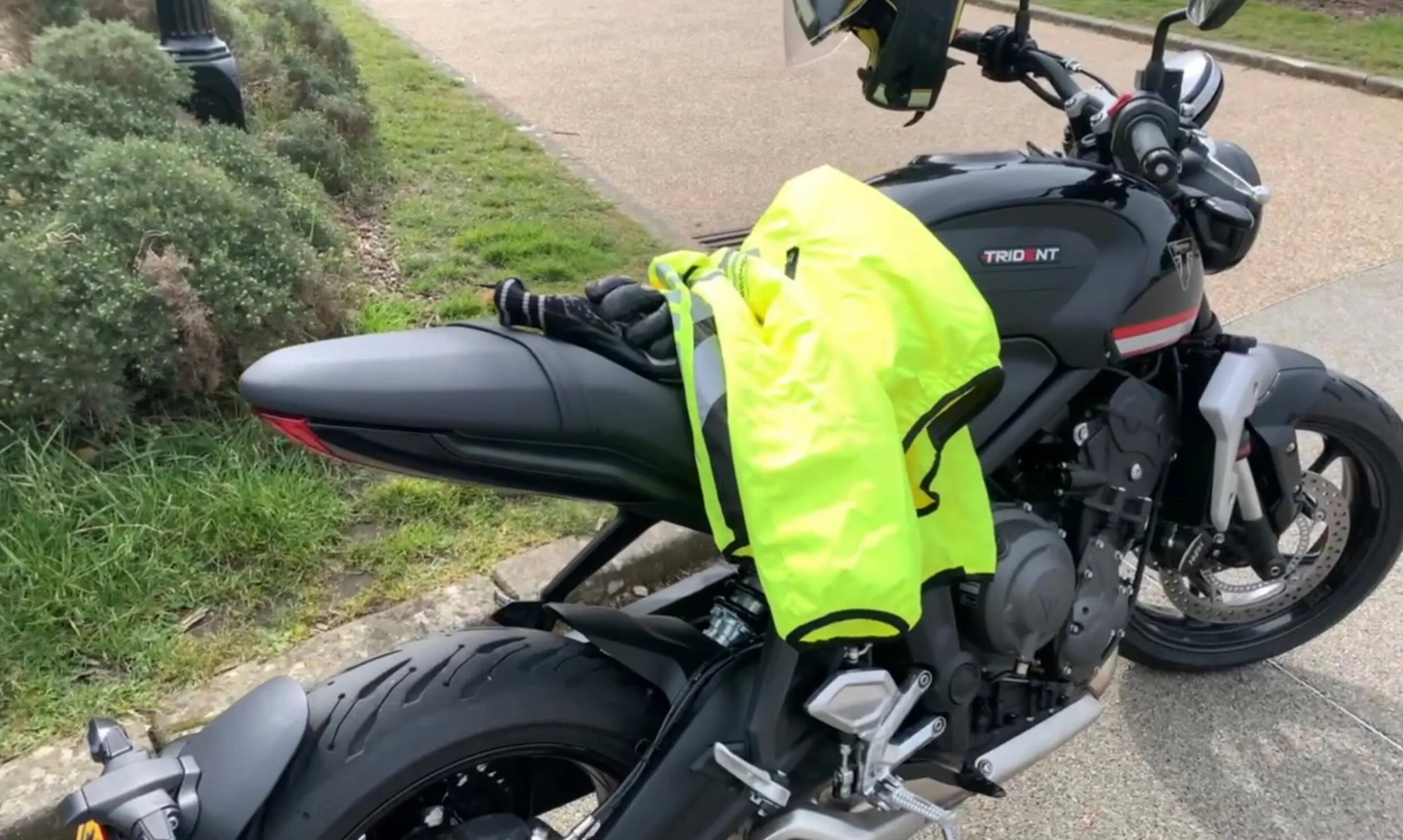 That is mot my weird stomach protruding, it is my wallet tucked into the pocket on the Triumph mid-layer.