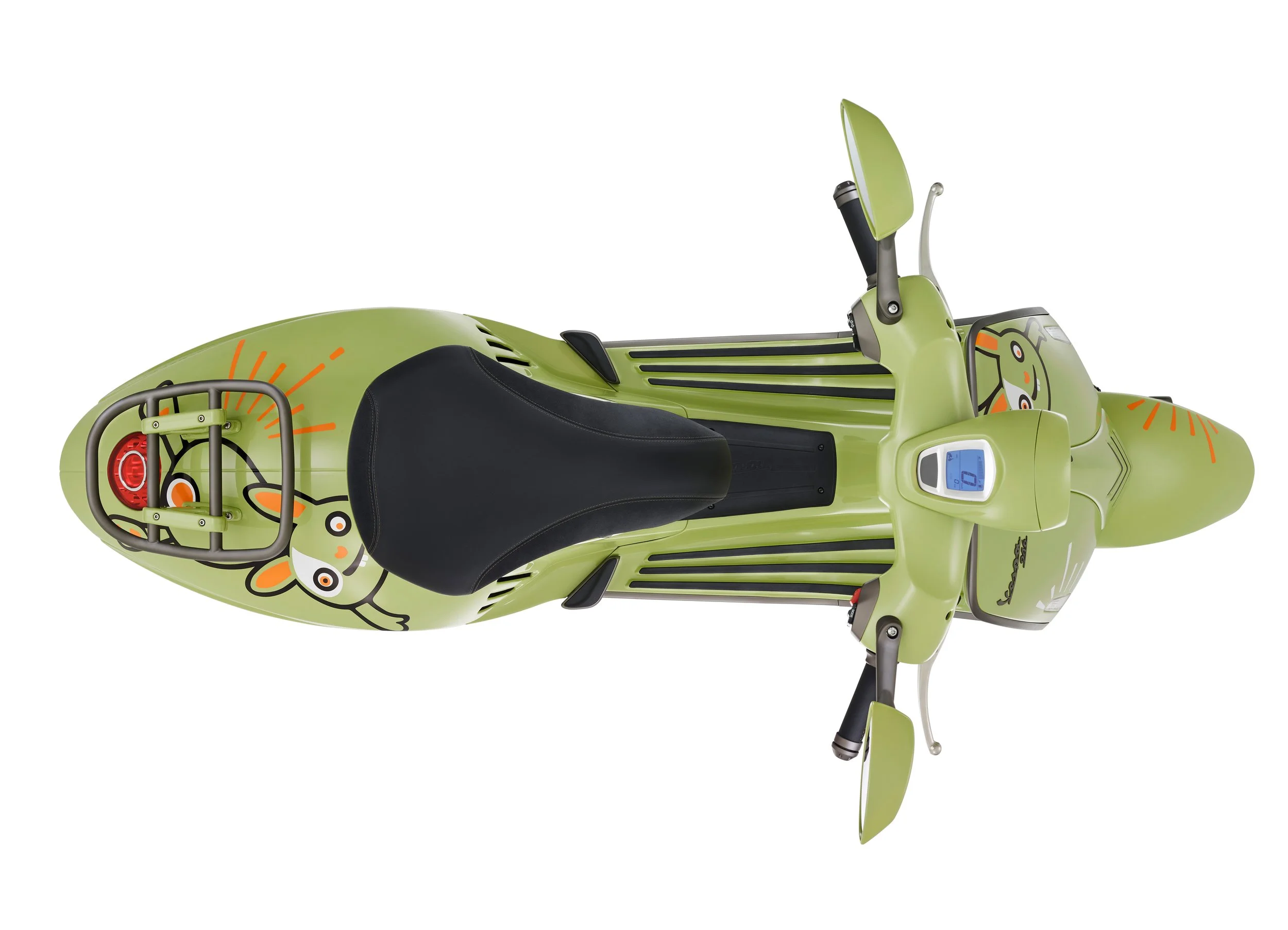 Since its debut in 2013, the Vespa 946 has established itself as the archetype of the Vespa of tomorrow, which interprets the values that have made Vespa a global icon while injecting it with a contemporary spirit and a forward facing attitude. It is an Italian-made masterpiece, which has now become a real collector's item, taking shape in a dedicated production line that is more like a haute couture atelier than anything else. This special version is issued in a reworking of the classic Vespa green, to symbolize the love of fun, light-heartedness, and nature typical of those born under this sign. The stylized silhouette of a rabbit peeps out on the body.