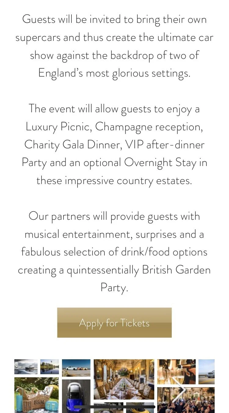 The ultimate garden party with the added bonus of plenty of Supercars to look at. A car show with a difference. Bring your Supercar and they will provide the party and more.