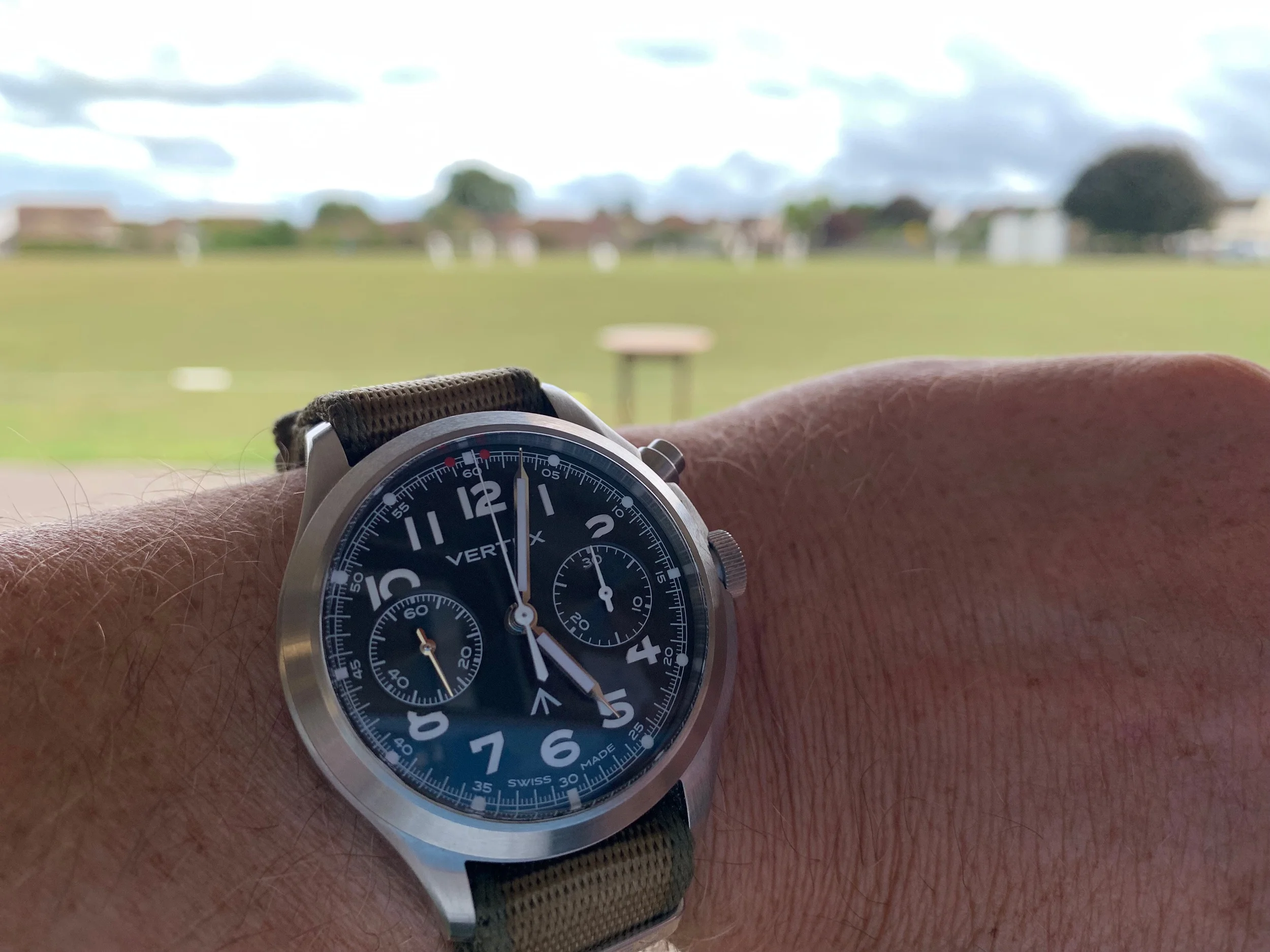 I am very fortunate to be wearing a gorgeous Timepiece from the luxury Vertex watch company. The MP45 is classically gorgeous and understated. It comes with several changes of straps so you can match outfits or your mood.